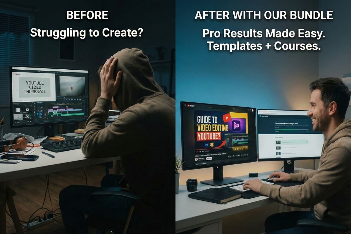 Upgrade your content creation game with the Premium Video Editing Toolkit, Thumbnail Templates & Courses Bundle — an all-in-one solution for creators, editors, freelancers, and digital marketers.